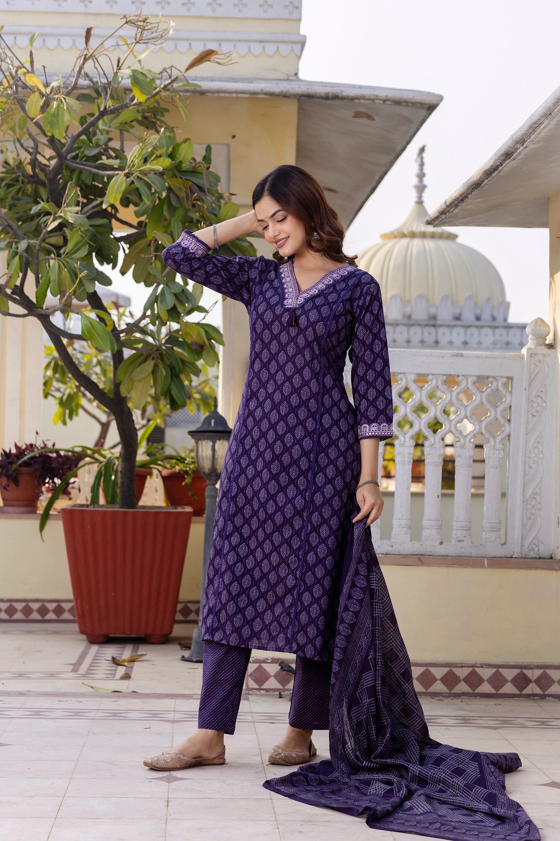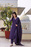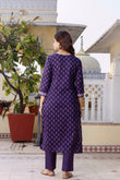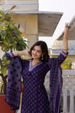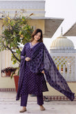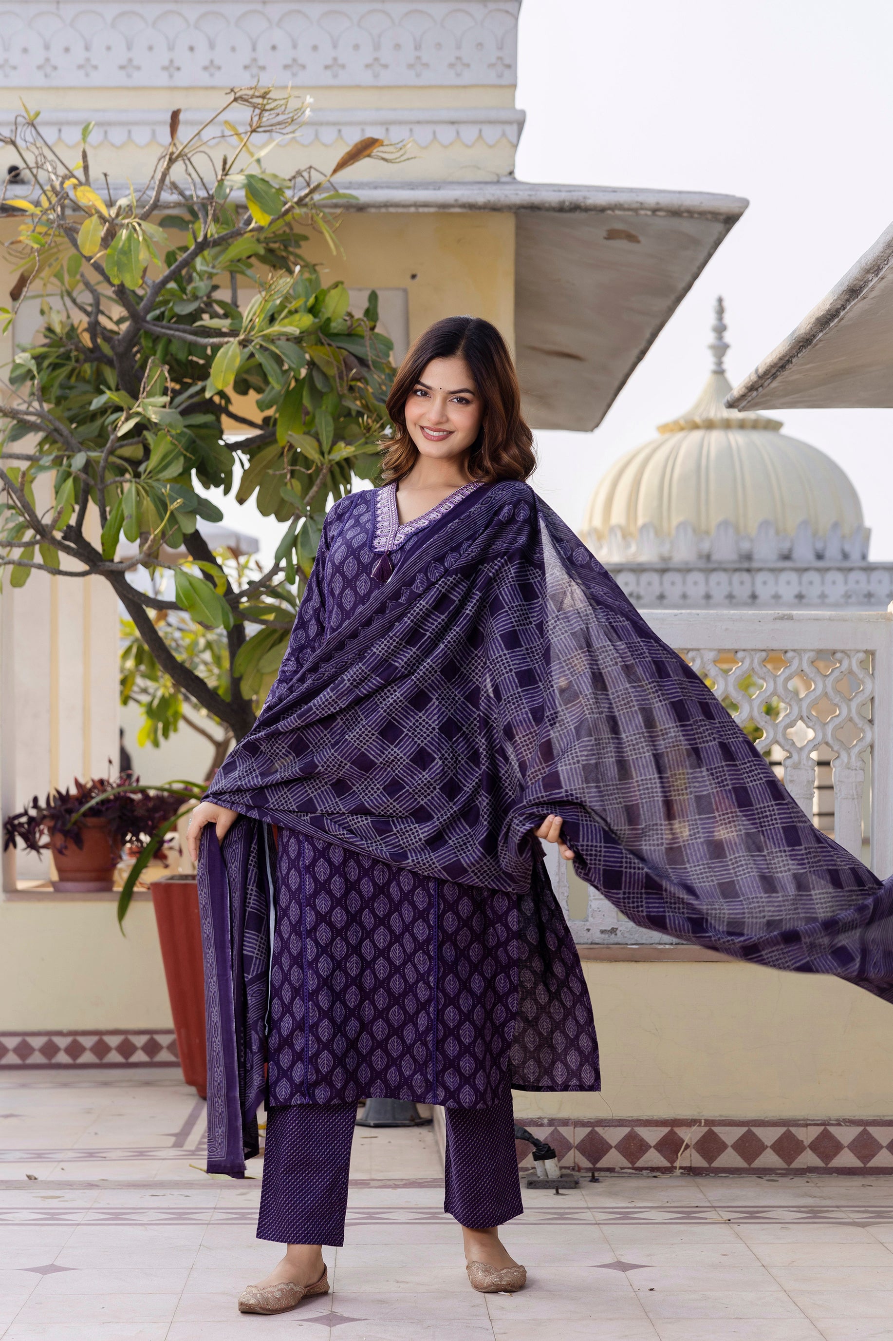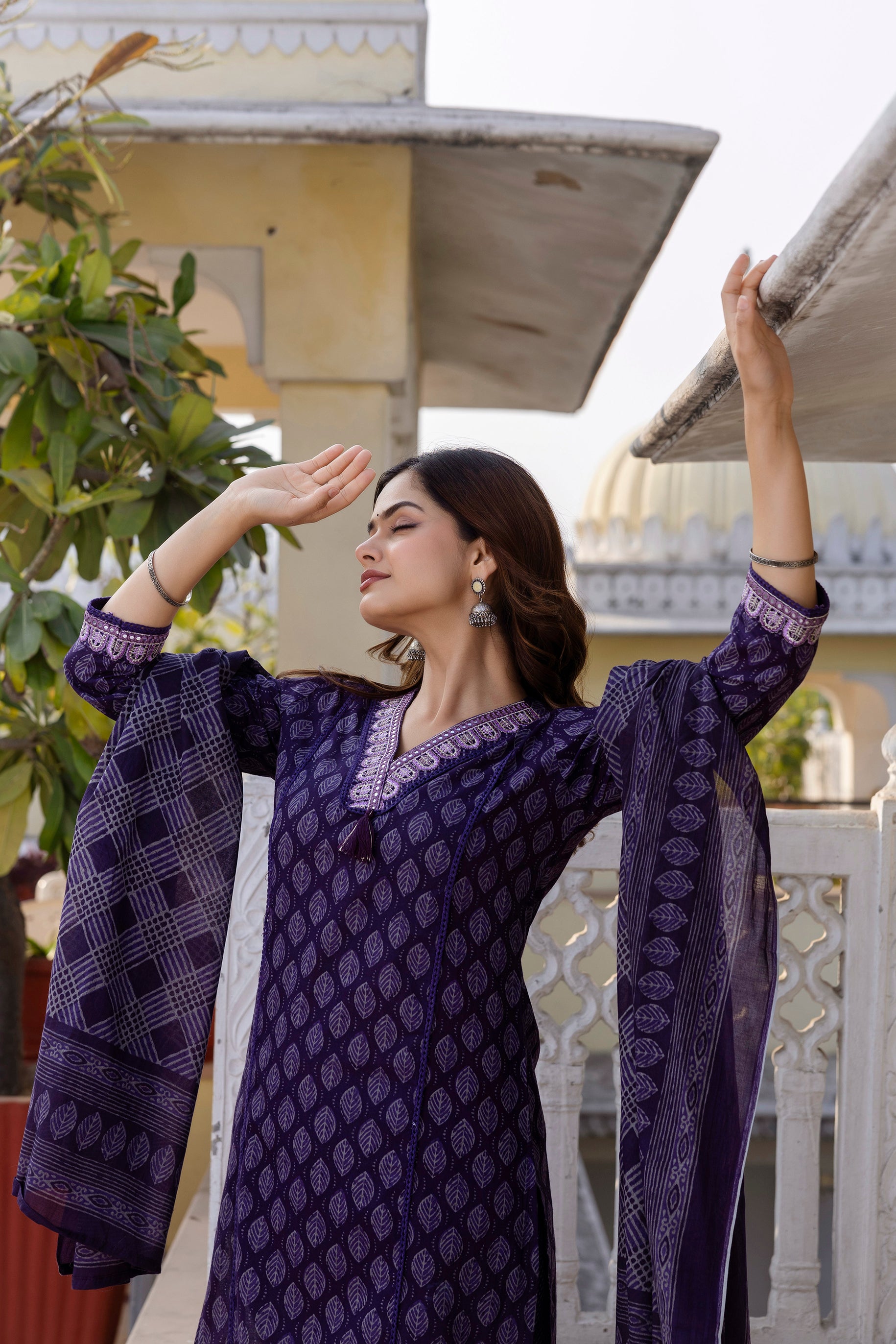 Buy Purple & White Printed Cotton Kurta Set with Trousers & Dupatta – Viral Crafts®