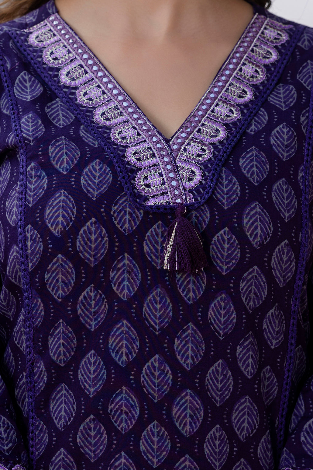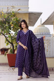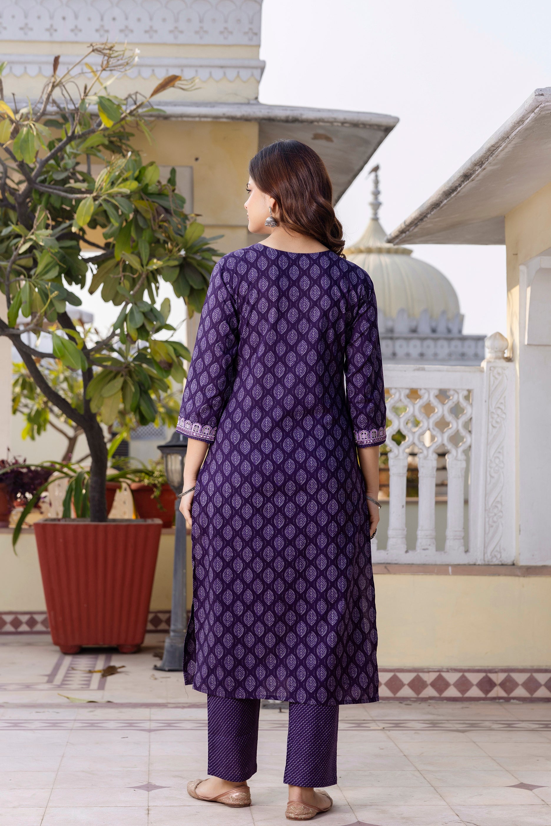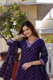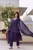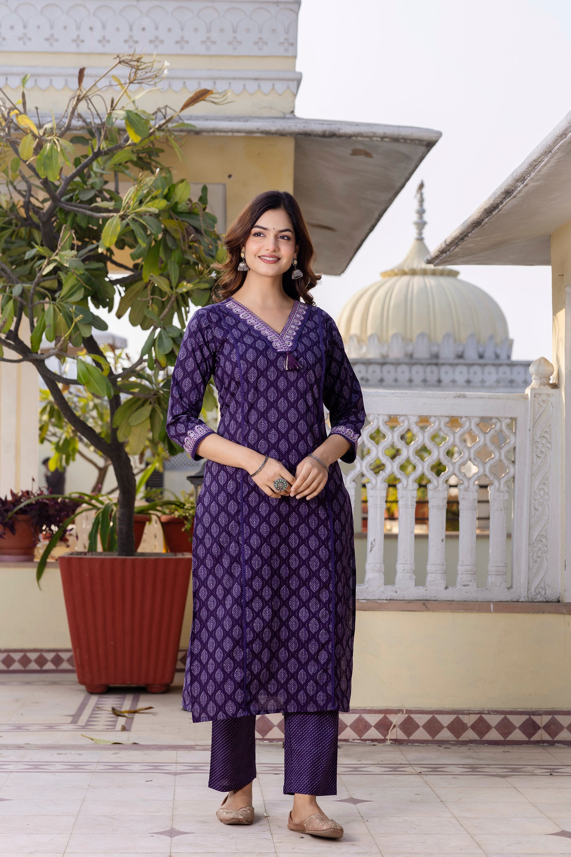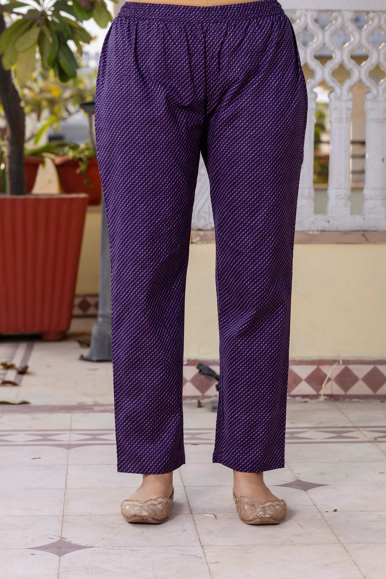 Buy Purple & White Printed Cotton Kurta Set with Trousers & Dupatta – Viral Crafts®