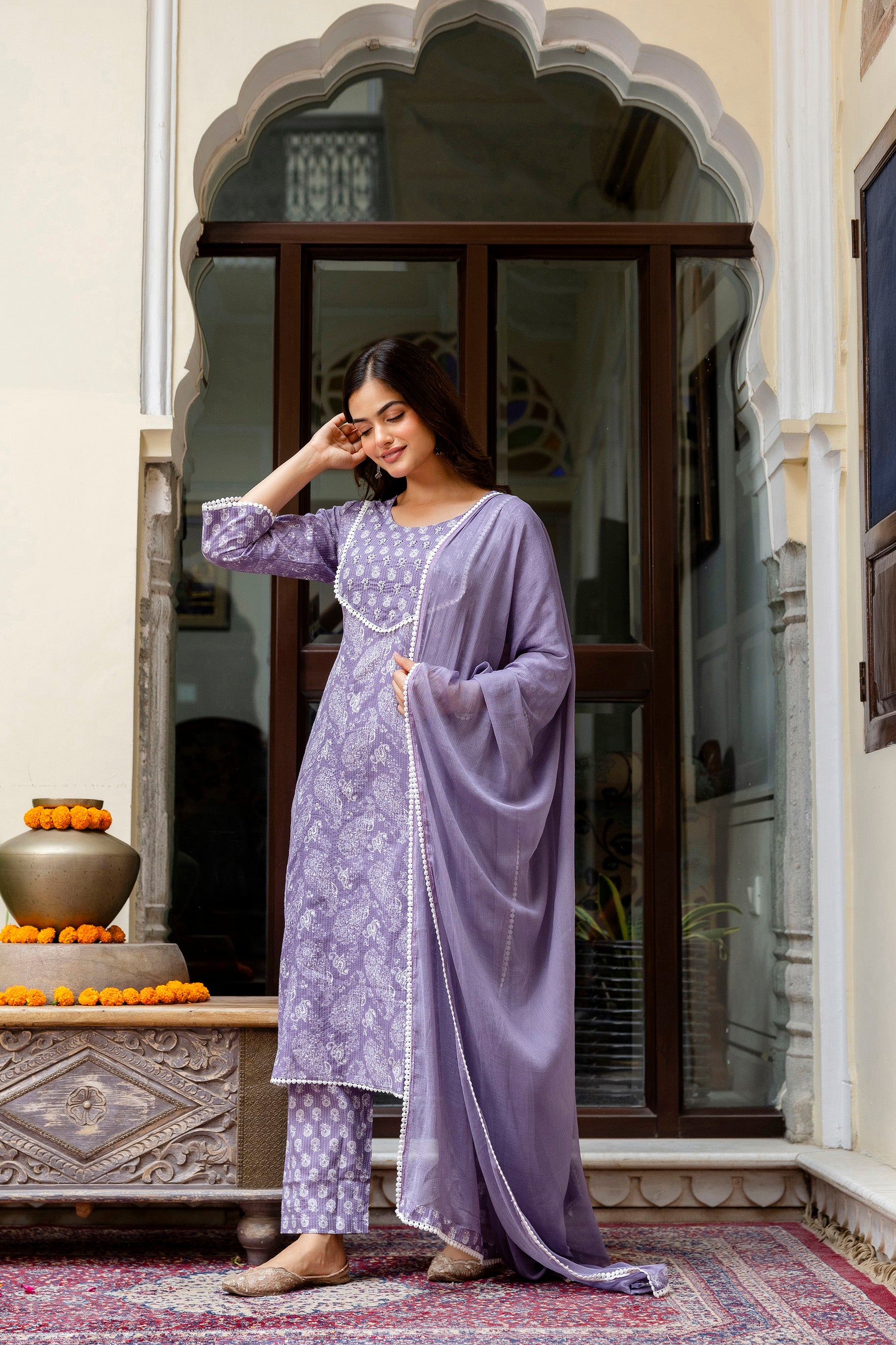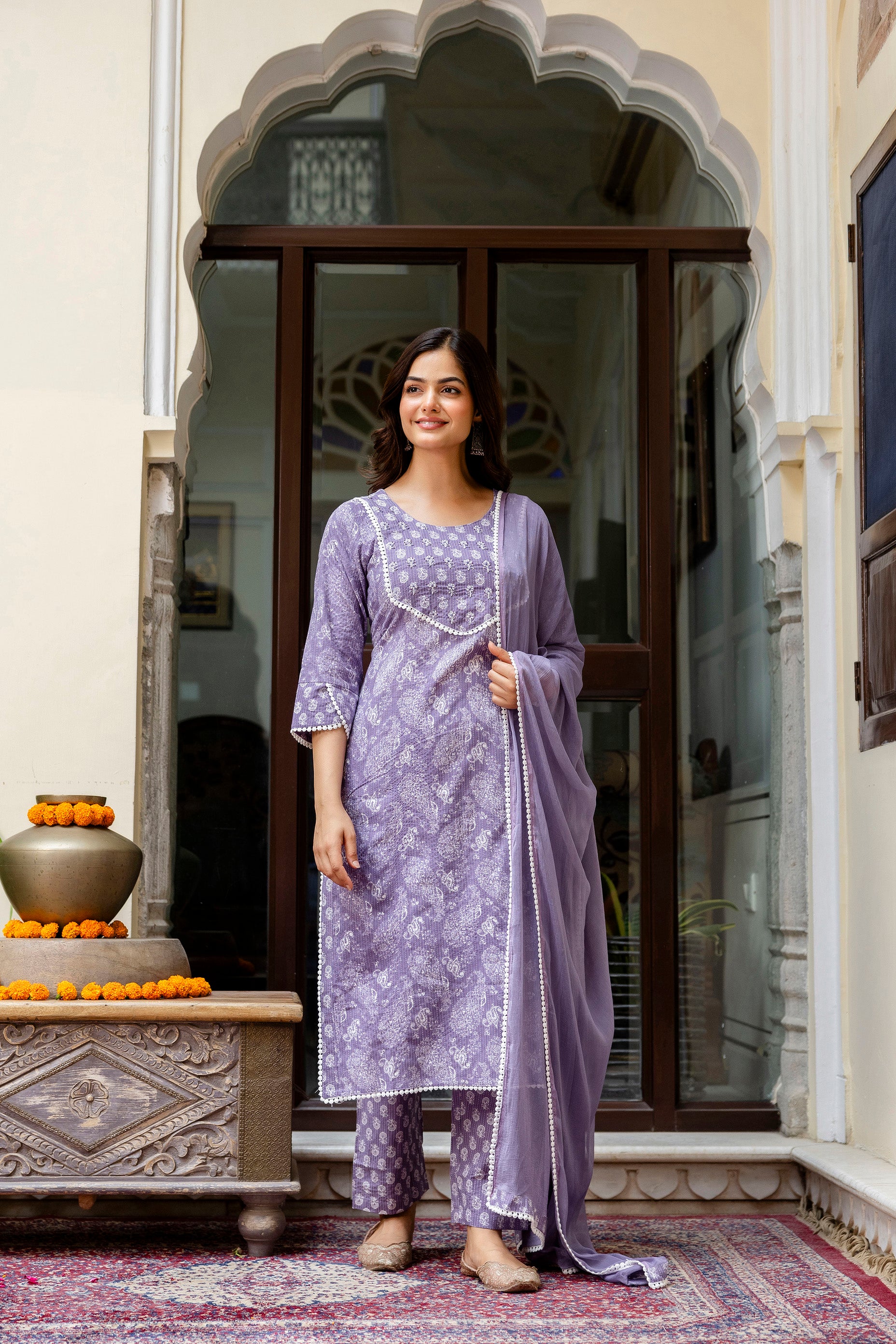 Buy Floral Printed Cotton Kurta Set with Pyjama & Dupatta – Viral Crafts®