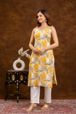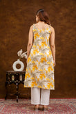 Yellow & White Floral Printed Cotton Straight Sleeveless Kurta – Viral Crafts®(VC-198)