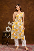Yellow & White Floral Printed Cotton Straight Sleeveless Kurta – Viral Crafts®